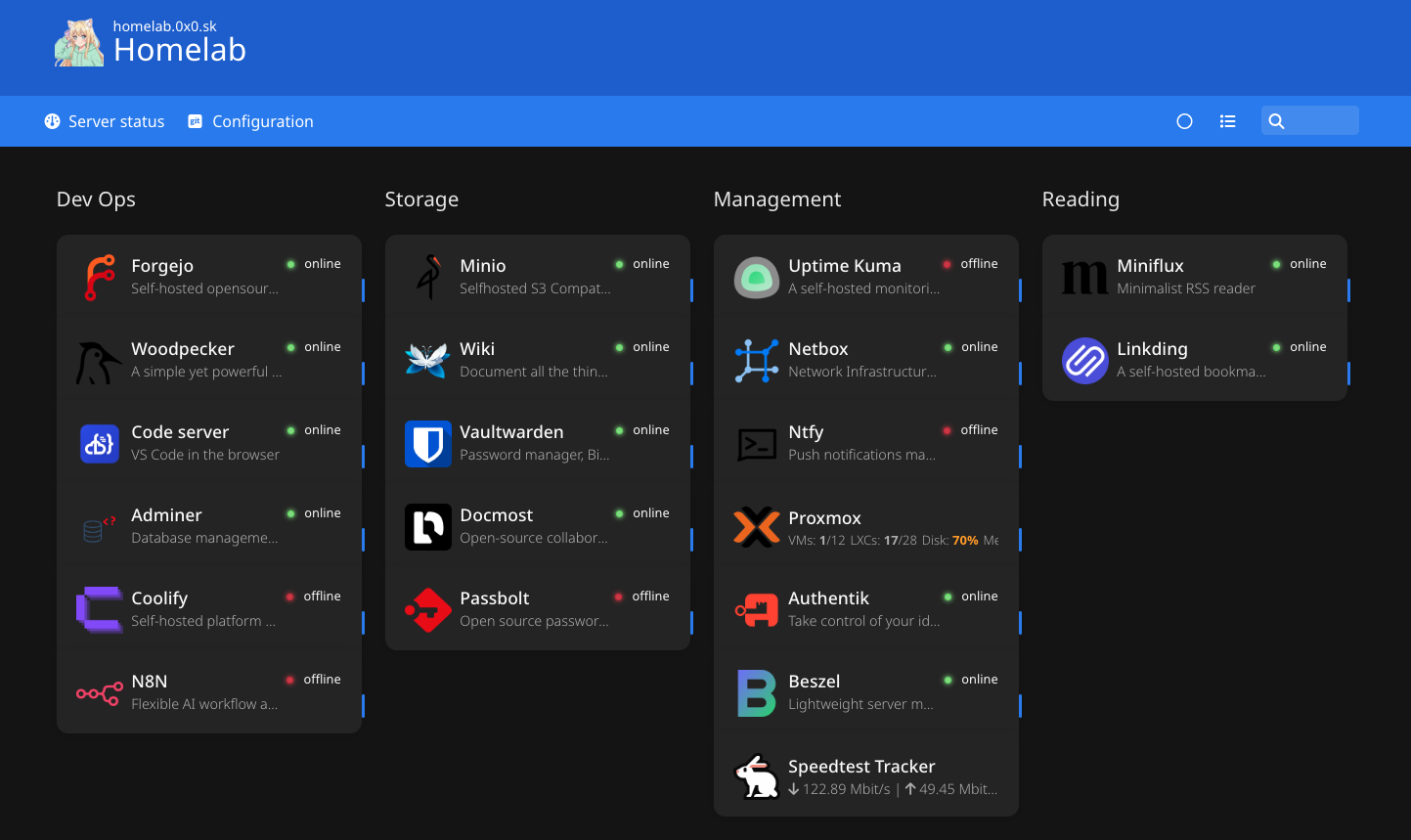 | Miniflux | Easy to use RSS reader (soon - i have to move it from my personal domain here) | |